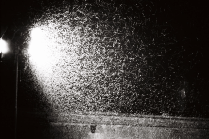 Son récit m’intrigue à tel point qu’il me donne l’énergie de me relever droit sur la chaise, de garder les yeux ouverts et de rester attentif malgré la moiteur ambiante exécrable, fixant Sébastien Rousseau comme rarement j’ai regardé quelqu’un droit dans les yeux. Tout en parlant, il sort des tirages les uns après les autres, semble parfois s’absenter devant l’un d’eux, se lève, se rassoit, murmure, tourne la tête en direction de la fenêtre, lève les bras au ciel, puis replonge les deux mains dans la boîte à souvenirs avec la frénésie d’un psychotique.
