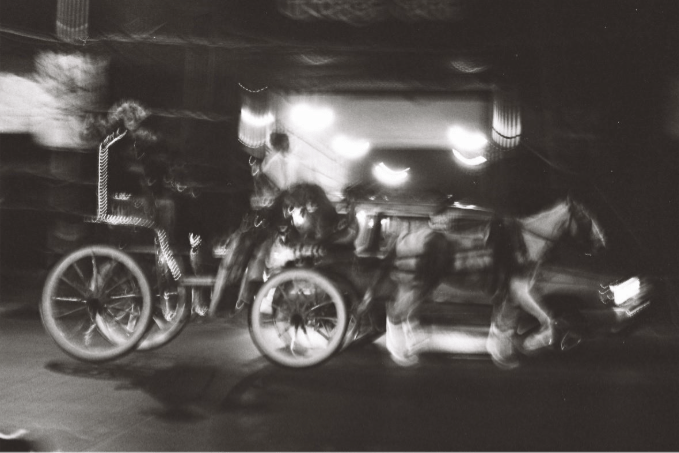 Je l’aide à rassembler ses photographies disséminées dans toute la chambre. Au fur et à mesure, sous mes yeux, son récit se déroule encore une fois, à toute vitesse et dans le désordre. Quand il referme le couvercle de la boîte en fer blanc, je quitte la chambre sans un mot. Le Docteur Singh n’est pas dans son bureau. Je lui laisse un mot avant de sortir de l’hôpital avec mon numéro de téléphone pour qu’il me joigne dès son retour aux aurores. Je rentre à pied sans repasser par le Consulat. En marchant dans les rues obscures jusque chez moi, c’est une autre Inde qui défile devant moi, celle de Sébastien Rousseau. Et je pense croiser plusieurs fois tous les visages de Chama que je me suis figuré, tous les regards d’Azzâm aussi, l’oncle mafieux Amin, Anshu la srilankaise, Qarej le Mexicain, les saoulards de la Havane, Aponi la sorcière de Saint-Pierre-et-Miquelon, et tant d’autres encore, et je pense reconnaître le jeune et beau Ejaz au volant d’un scooter, d’une moto, d’un tuk-tuk, au guidon d’un vélo sans âge, ni roues ni freins.
